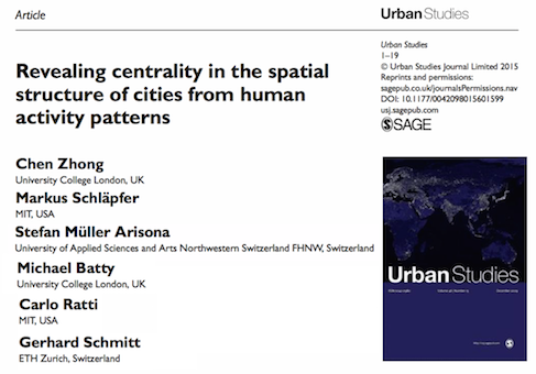 Chen Zhong (CASA) and her colleagues from ETH and MIT continue to produce interesting analyses from work with the EZ-Link data in Singapore. She introduces some interesting entropy measures along with other indices in revealing centrality in activity patterns. Her paper can be downloaded here as a pre print on the Urban Studies site.